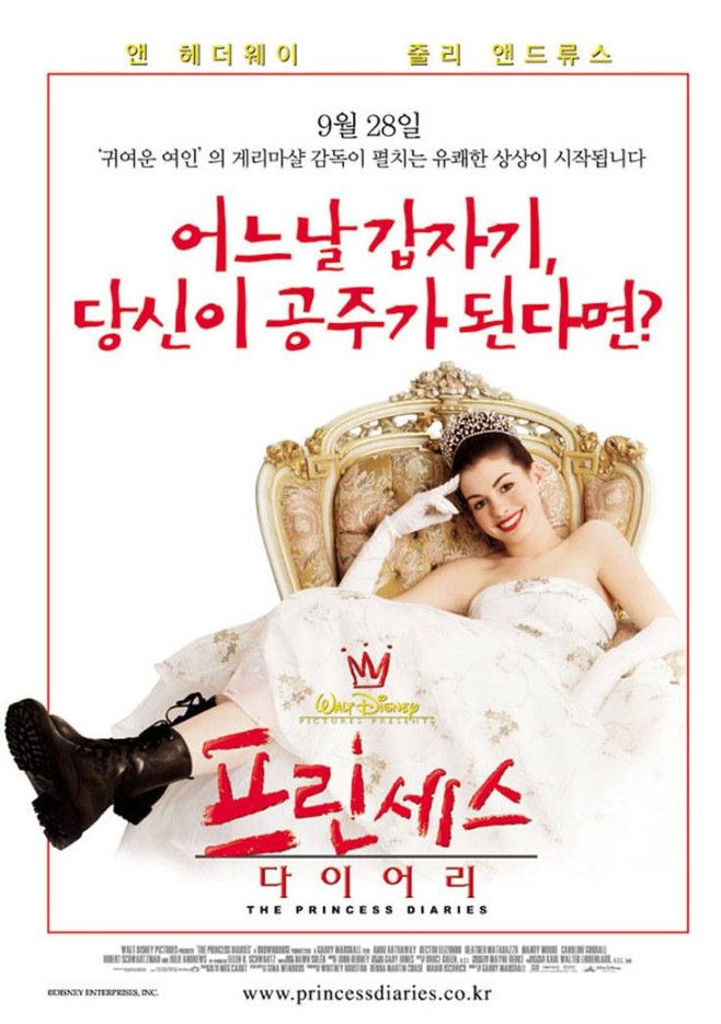 20대 초반에 TV에서 방영해줬던 영화, 내가 외국 하이틴 로맨스 영화에 빠지게 만든 영화다. 본 영화는 1편과 2편 시리즈로 나눠져 있는데 2편은 성인이 된 미아가 왕위계승권자로서 더 성숙해지고 발전해 나가는 성장 러브스토리로 짜여 있다. 1편에서 자세히 다루지 않았던 여왕님(미아의 할머니)과 조의 러브스토리도 나오니 2편 또한 가벼운 마음으로 보시길 추천한다.